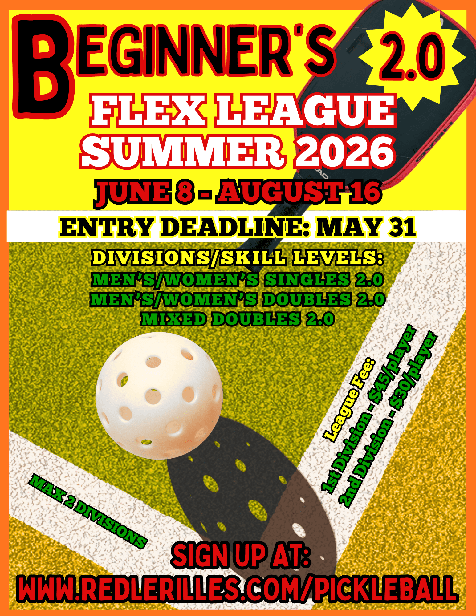 2.0 BEGINNER’S FLEX LEAGUE, SUMMER 2026 – Poster/Entry Form