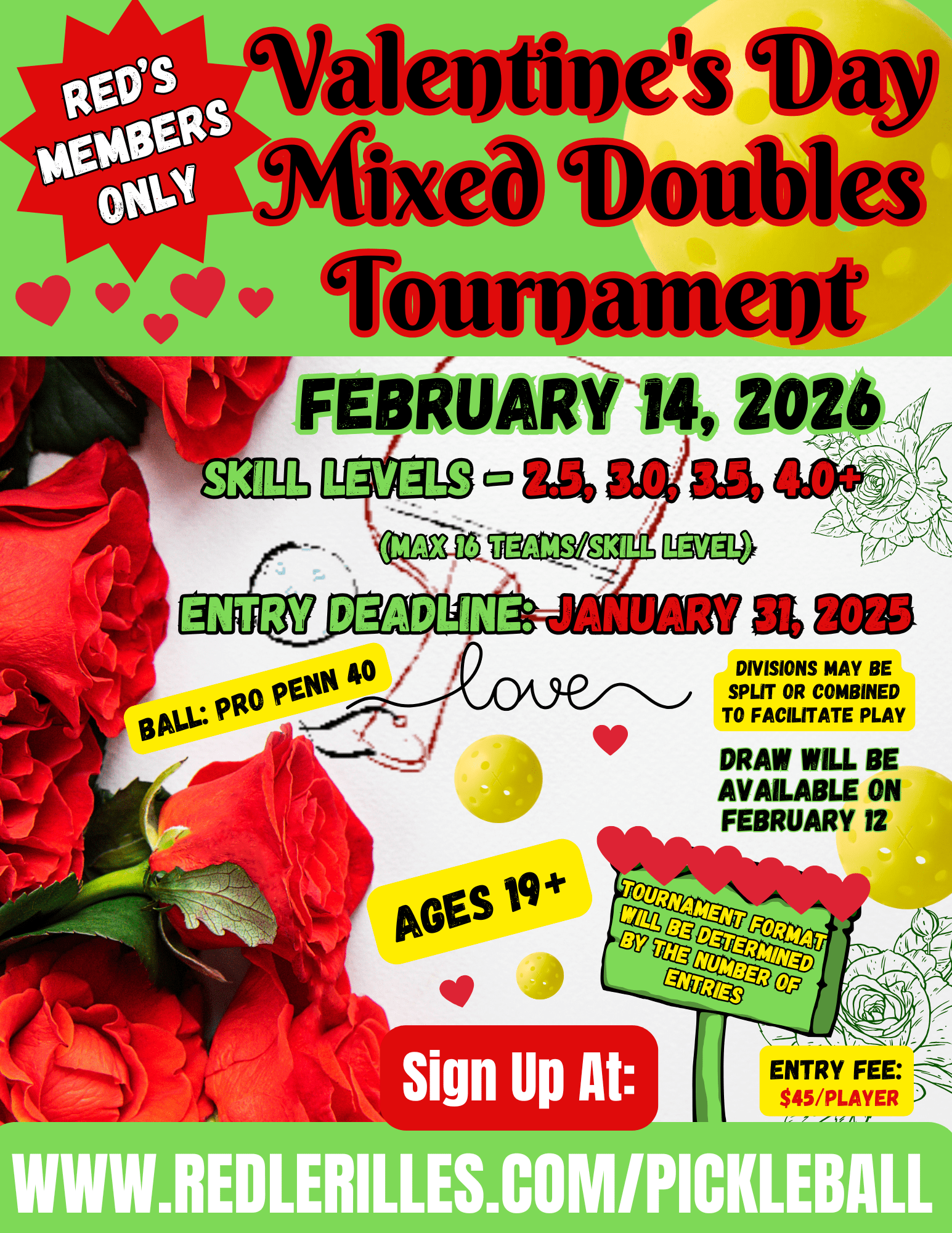 Home Sports Pickleball VALENTINE’S DAY MIXED DOUBLES TOURNAMENT 2026 – Poster/Entry Form